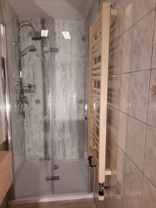 Home Anschrift Anfrage Impressum / Datenschutz Gästebuch Preise & Ausstattung Haus Seeblick (50 qm)Eingangsbereich mit Sitzmöglichkeit u. Garderobe,Parkmöglichkeit auf Grundstück kostenfrei, überdacht 5,00 € / TagTelefon, SAT-TV, Radio,Liegewiese, Gartenmöbel, Grillmöglichkeit vorhanden.PreiseFW 2 Pers. pro Ü ( inkl. Endreinigung ) ab 80,00 €FW 1 Pers. pro Ü ( inkl. Endreinigung ) ab 50,00 €Check-in: Bitte nach AbspracheCheck-out: bis 10:00 UhrZahlungsmöglichkeiten: Barzahlung vor OrtStornierung: Kostenfrei möglichKostenfreies WLAN Wohnzimmer mit KücheAusstattung KücheKühlschrank, Spülmaschine, Ceranfeld mit Backröhre, Mikrowelle,Kaffeemaschine, Toaster, Wasserkocher, Geschirrtücher BadDusche / WC (Haartrockner, Handtücher vorhanden) Schlafzimmer1 Schlafzimmer mit Boxspringbett (inkl. Bettwäsche),Aufbettung im WZ 1,45m x 2,00 m Zusatzleistungen möglich:FahrradverleihFahrradtransport für weitere Entfernungen möglich,Gästetransfer.